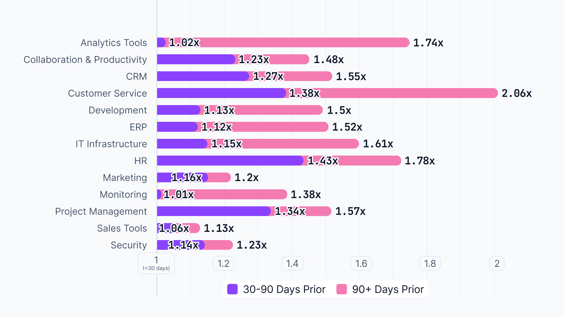 According to Vertice data, those starting their renewal 90+ days before the deadline achieve 49% better savings on average than those starting negotiations with less than 30 days to go.