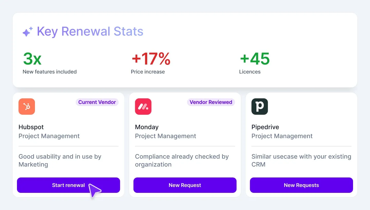 Understand what your renewal really looks like, with market vendor insights and summaries.