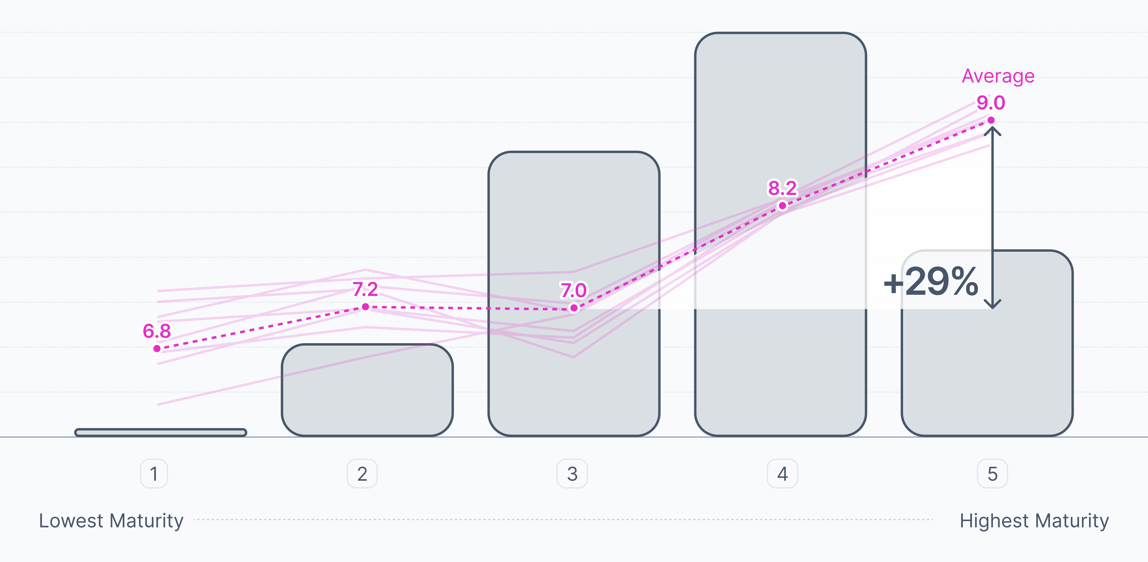 A procurement maturity model measures how effectively your procurement function operates across people, processes, data and technology. It benchmarks your procurement capability against leading practices and allows you to track progress over time. Using a maturity model ensures your procurement evaluation is consistent, objective and comparable to industry standards.
