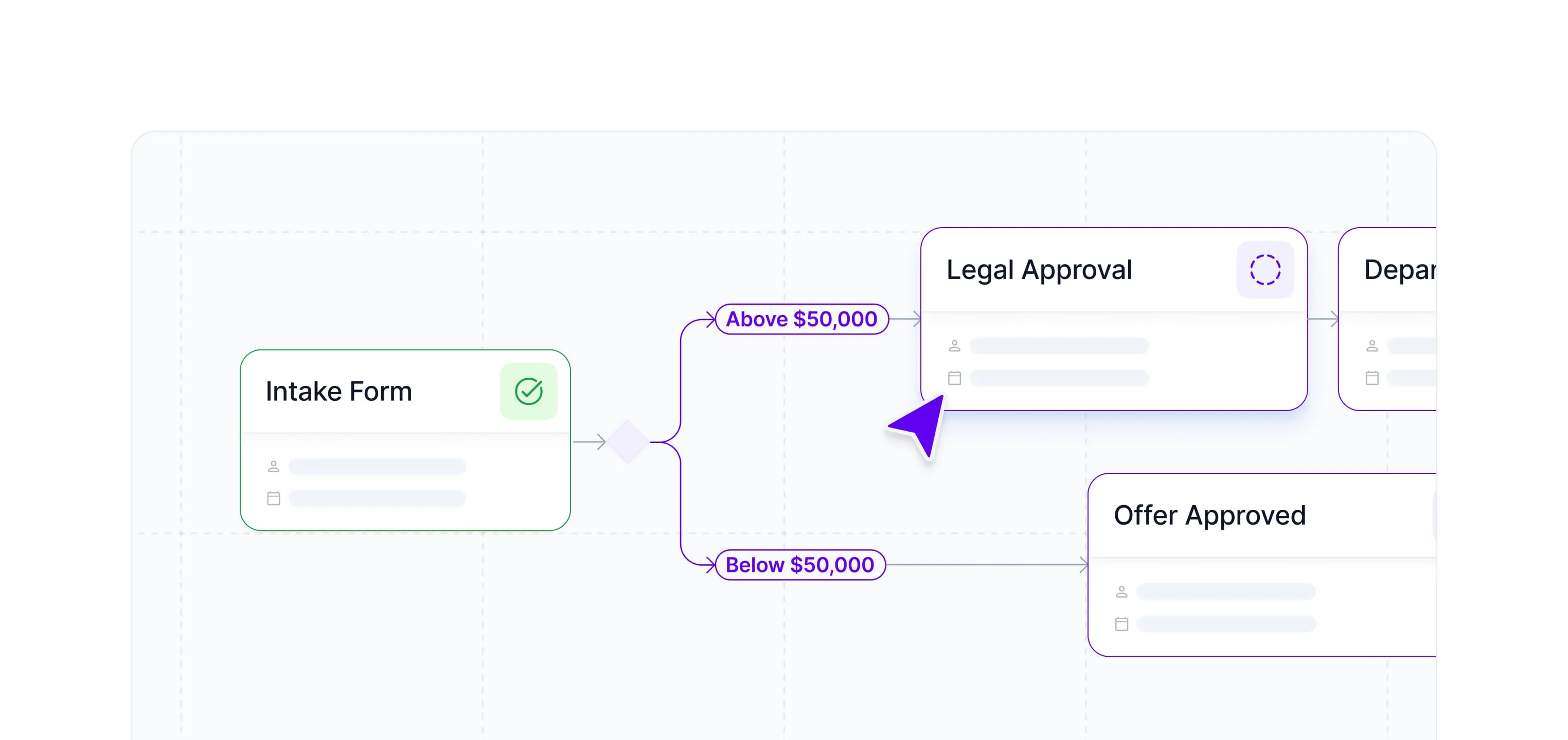 Intuitive intake and approval workflows enable you to embed your legal requirements at the very start of the purchase process.